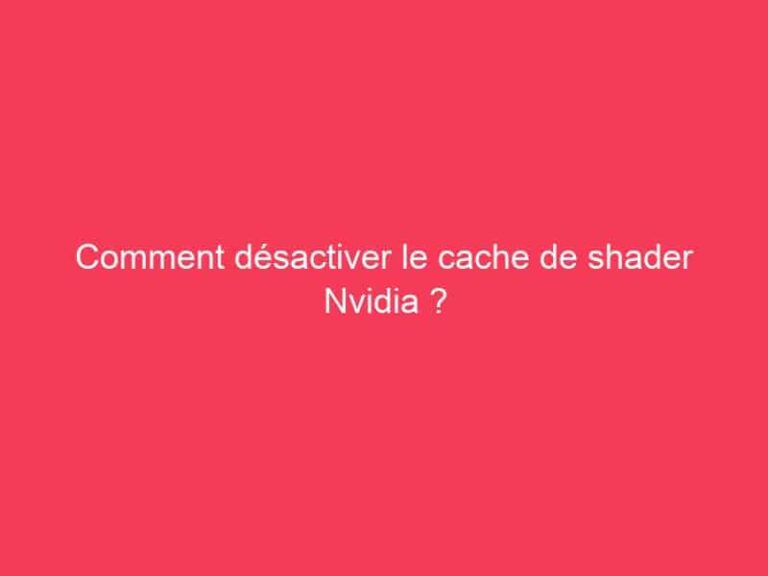 Comment désactiver le cache de shader Nvidia ? Dans le « Panneau de configuration NVIDIA », accédez à « Paramètres 3D » et définissez « Cache de shader » sur « Désactivé ». … Read more