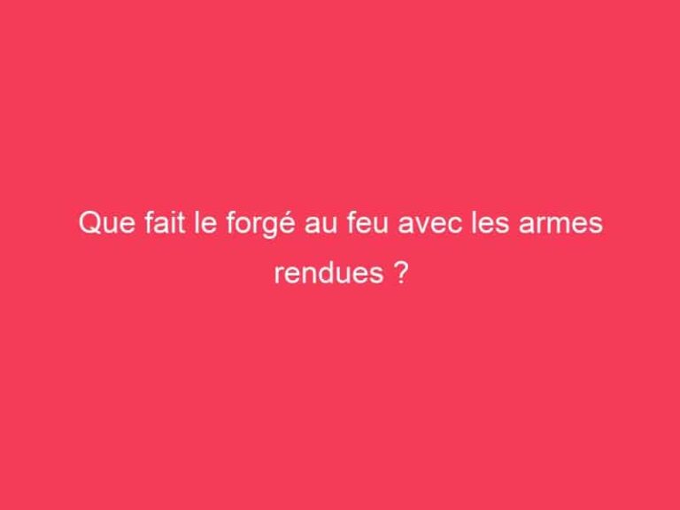 Que fait le forgé au feu avec les armes rendues ? Après la diffusion de l’épisode, les candidats perdants récupèrent leurs armes. (La production conserve … Read more