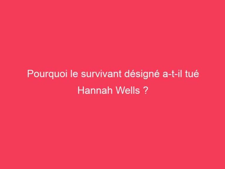 Pourquoi le survivant désigné a-t-il tué Hannah Wells ? Désorientée et incapable de reprendre le contrôle de ses fonctions motrices, Hannah est tombée dans un … Read more