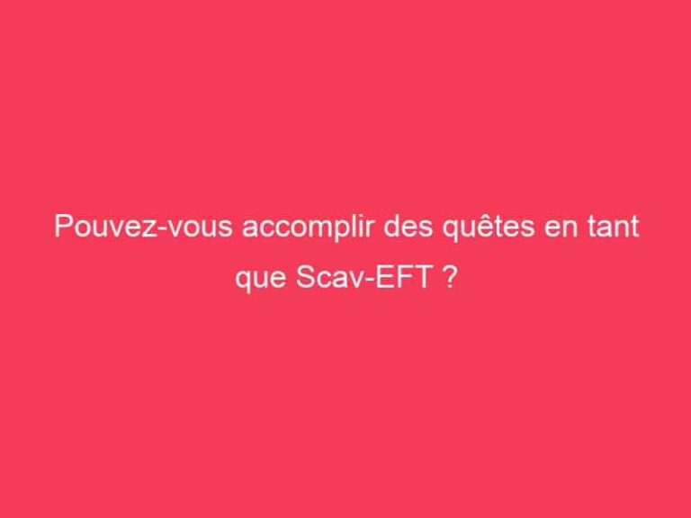 Pouvez-vous accomplir des quêtes en tant que Scav-EFT ? Non, mais vous pouvez récupérer les clés nécessaires. Quelle clé est requise pour l’activité Aquarius ? 206 clés … Read more