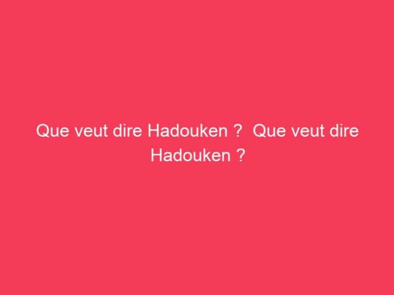 Que veut dire Haduken ? Poing ondulant Dans Street Fighter, Hadouken (波動 拳) est une attaque spéciale déclenchée par Ryu, Ken et quelques autres personnages. … Read more