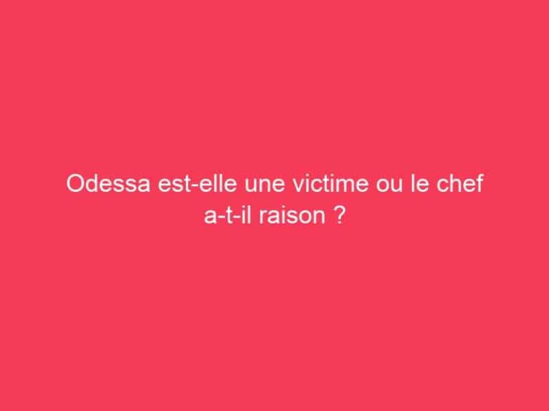 Odessa est-elle une victime ou le chef a-t-il raison ? Vous pouvez dire à Odessa que tout est de sa faute ou qu’elle est la … Read more