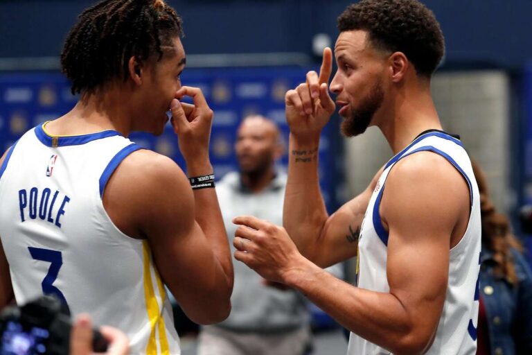 Jordan Poole är en ung basketspelare som för närvarande spelar för Golden State Warriors, medan Steph Curry är en av de mest kända och framgångsrika spelarna i NBA, som också spelar för Warriors.